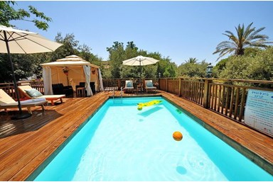 שתי סוויטות זוגיות עם מרפסת מקורה ופינת ישיבה.בחצר ערסל זוגי אל מול נופיה הקסומים של הכנרת. המתחם מתאים לזוגות או משפחה עד 4 נפשות