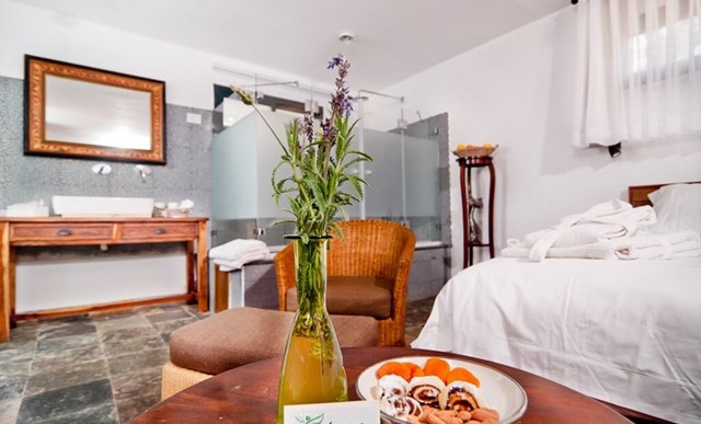 כל סוויטה הינה מבנה אבן כפרי המתאים לאירוח זוגי או משפחתי (לזוג +2), אשר מעוצבת בקפידה ומאובזרת בכל הדרוש לחופשה בלתי נשכחת: מיטה זוגית גדולה עם מצעים מלטפים, חדר רחצה מטופח עם תחליבי אמבט ומגבות, שולחן אוכל, מסך lcd בכבלים ומכשיר dvd, מכונת אספרסו מקצועית, מטבחון מאובזר עם פינת קפה, רהיטים וחפצי נוי בסגנון כפרי ושידות לאחסון. לכל סוויטה יציאה למרפסת פרטית עם פינת ישיבה נעימה הצופה לבוסתן, ריהוט גן והדובדבן שבקצפת - ג'קוזי ספא חיצוני חמים ומפנק במיוחד.