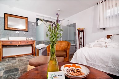 סוויטת נופש זוגית הבנויה כחלל אחד מרווח, מעוצבת ומרוהטת בסגנון כפרי ומאובזרת בקפידה להנאתכם המירבית: מיטה זוגית ענקית ועליה מצעים מלטפים, מסך טלוויזיה שטוח עם חיבור לכבלים, פינת ישיבה נעימה, חדר רחצה מטופח עם פינוקי אמבט ומגבות, ארונות ושידות לאחסון, רהיטים וחפצי נוי, מכונת אספרסו, מקרר, פינת קפה עשירה והדובדבן שבקצפת - אמבט ג'קוזי אינטימי ומפנק.