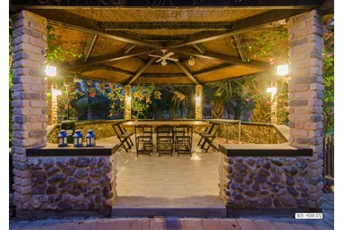 בחצר תיהנו מספסלי עץ, פינות ישיבה נוחות, עמדת bbq מאובזרת, תאורת לילה נעימה מדשאות מוריקות ושפע עצי נוי.