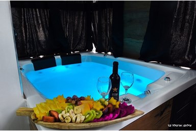 ספה נפתחת, חדר רחצה מאובזר, בקבוק יין, חדר שינה זוגי עם ג'קוזי גדול ומפנק, ,