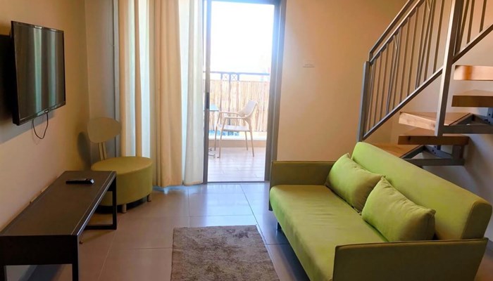 לופט בבית אלמוג - דירת נופש עם מרפסת מול הים ובריכה