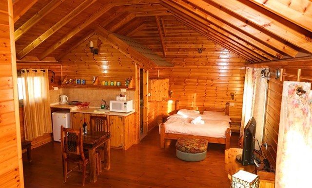 בקתות עץ הבנויות ומעוצבות בסגנון המשרה אווירה כפרית אמיתית, בהן תיהנו ממיטב האבזור לחופשה קסומה: מיטה זוגית גדולה ועליה מצעים מלטפים, פינת אוכל משפחתית, מסך lcd המחובר לכבלים, סלון יפהייפה מעץ, מטבחון מאובזר להכנת ארוחות קלות במהלך החופשה (פינת שתייה חמה, מקרר, מיקרוגל, כיריים, קומקום חשמלי וכלי הגשה), חדר רחצה מטופח ושיא הפינוק – אמבט ג'קוזי חמים ומרגיע.