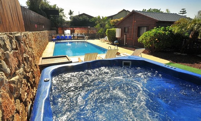 בקתות תכלת וארגמן - החצר והבריכה - זמינות חדרים